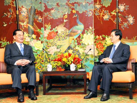 During his 55-minute meeting with Hu in Honolulu, Hawaii, prior to the main APEC leaders’ summit scheduled for yesterday and today, Lien put forward the issue of signing a cross-strait peace agreement, saying he hoped both sides “could start to exchange views on the peace issue.”