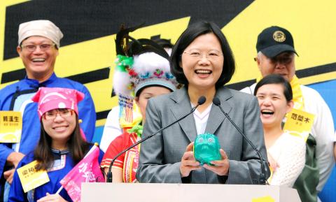 As for the blue piggy bank, “I understand why some of our supporters have a problem with the color [as it reminds people of the pan-blue camp], but that is why I named it ‘Tolerance,’” Tsai said, adding: “We have to work with everyone in this country toward a better future.”