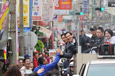 He later joined his running mate, Premier Wu Den-yih (吳敦義), in a bullet-proof motorcade as they waved to local residents.