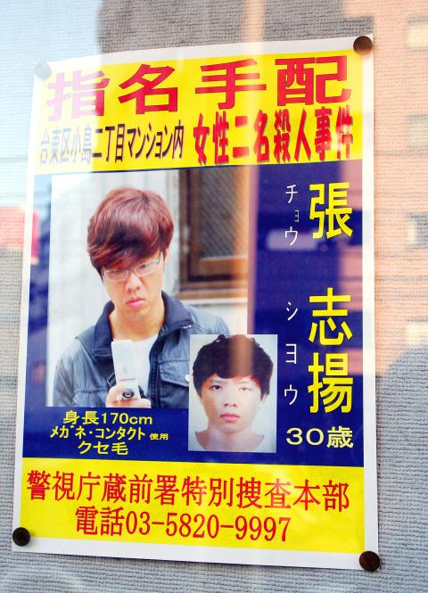 On Sunday, the 30-year-old Chang was put on the wanted list after police obtained a warrant for his arrest in connection with the stabbing death of 23-year-old Lin Chih-ying (林芷瀅) and 25-year-old Julia Chu (朱立婕) in an apartment building in Tokyo’s Taito Ward, which is used by students at the Intercultural Institute of Japan’s language school.