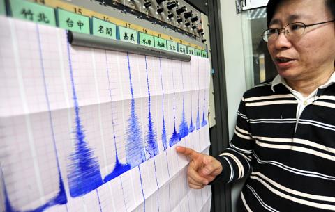 Seismological Center director Kuo Kai-wen (郭鎧紋) said yesterday’s earthquake was caused by the extrusion of the Eurasian Plate and Philippine Sea Plate.