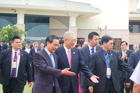 While Wu did not make any public comments during the banquet, the head of the Taiwanese delegation, former foreign minister Fredrick Chien (錢復), praised Wang, saying he had “contributed the most” toward promoting cross-strait relations.