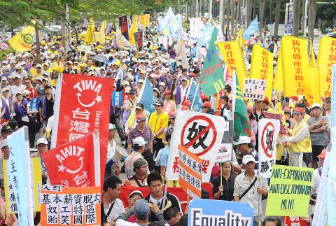 Taiwan Labor Front secretary-general Son Yu-lian (孫友聯) said about one-fourth of salaried workers are unable to save more than NT$50,000 (US$1,714) a year and the majority barely make a living with their low wages.