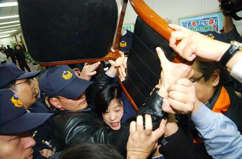 Lee, Chiu, Feng and Lin — all lawmakers at the time — mobilized a crowd and staged a protest outside the CEC building on March 26, 2004, prior to the commission’s declaration of the result of the 2004 presidential election, when then-president Chen Shui-bian (陳水扁) and then-vice president Annette Lu (呂秀蓮) of the Democratic Progressive Party (DPP) won a second term.