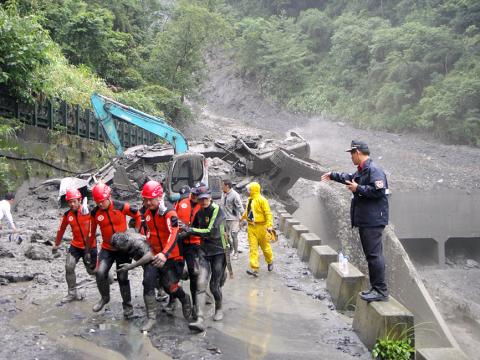 Casualties caused by landslides or flooding were recorded in Nantou County and Greater Taichung, as well as in New Taipei City (新北市) and Taoyuan County, the center said in a press release.
