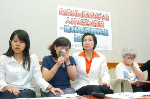 Chung Ting-pang’s wife, surname Lee (李), was in tears at the conference, saying the government was the only channel available to the family to seek the return of her husband.