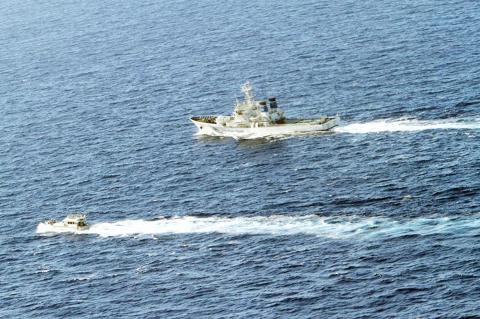 The fishing boat, with nine people on board — three activists, three sailors and three fishermen — set sail at 11:34pm on Thursday night and the coast guard dispatched five vessels to escort the fishing boat at about 8:25am, Chen said.