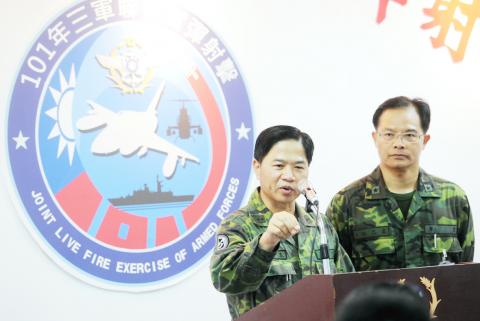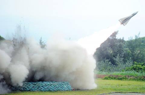 In all, 26 missiles were fired from 12 platforms in the Joint Live Fire Exercise of the Armed Forces at the Chung-Shan Institute of Science and Technology (CSIST) missile test base in Jioupeng (九鵬), Pingtung County. Three services — the army, air force and navy — participated, with more than 2,300 soldiers mobilized for the exercise.