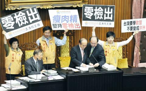 With a 63-46 vote along party lines, the nation is expected to adopt maximum residue levels (MRL) of 10 parts per million (ppm) for ractopamine, a standard favored by President Ma Ying-jeou (馬英九) and the Chinese Nationalist Party (KMT).