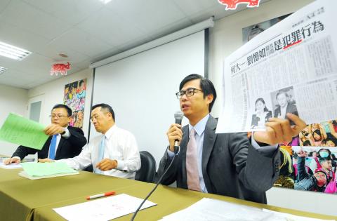 The case was obviously a mud-slinging tactic and would have been a scandal in other democracies, said DPP Legislator Chen Chi-mai (陳其邁), who served as the moderator of the press conference.