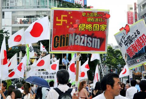 Anti-Japan protests reignited yesterday across China, the sensitive anniversary marking Tokyo’s occupation of its giant neighbor, escalating a maritime dispute that has forced major Japanese brandname firms to suspend business there.