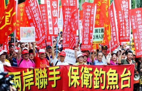 At a separate event, a group of fishermen announced that 60 Taiwanese fishing boats from Yilan County would set sail today for the Diaoyutai Islands to safeguard Taiwanese fishermen’s trawling rights in waters near the resource-rich island chain.