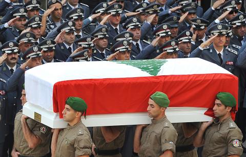After a solemn military farewell at the headquarters of the Internal Security Forces (ISF), the body of its intelligence chief, General Wissam al-Hassan, was transported to Martyrs Square along with that of his chauffeur.