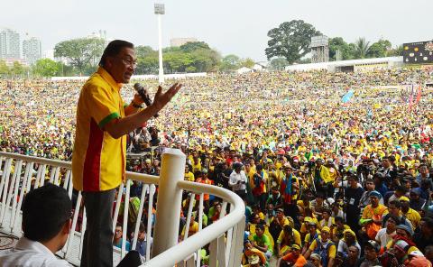 At least 50,000 people crowded into an iconic stadium in Kuala Lumpur where independence was declared in 1957 and tens of thousands more thronged surrounding areas as the opposition effectively began its campaign.