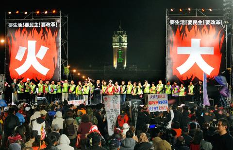 DPP Chairman Su Tseng-chang (蘇貞昌) said last week that if Ma agreed to the three demands, the DPP would cancel the protest. The Ma administration did not respond and went on to block DPP-led amendments to media acts in the legislature on Friday.