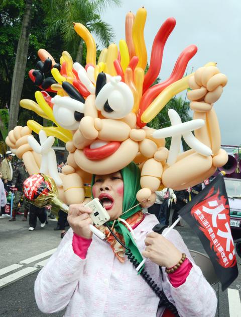 Various advocacy groups attended the protest and highlighted their own causes, such as closing nuclear power plants, stopping illegal land expropriation and supporting press freedom in China. Some demonstrators, including several foreign residents in Taiwan, also held banners to protest what they said was Taipei Mayor Hau Lung-bin’s (郝龍斌) inappropriate handling of night market regulations.