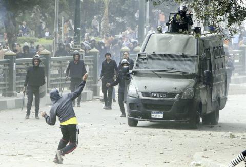 In Cairo, overnight clashes on the outskirts of Tahrir Square — the symbolic heart of the uprising that ousted former Egyptian president Hosni Mubarak in 2011 — continued into yesterday, with one bridge blocked off and the heavy smell of tear gas hanging in the air.