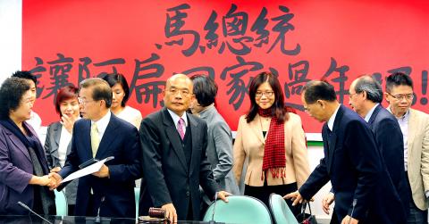 “We urge President Ma to let former president Chen go home for the Lunar New Year holidays. It’s best for him to be at home with his family during the New Year holidays,” DPP Chairman Su Tseng-chang (蘇貞昌) told a press conference.