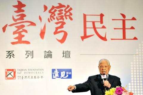 Lee made the remarks in a speech at a forum hosted by the Taiwan Foundation for Democracy, the first of a series of lectures to celebrate a 10th anniversary of the government-affiliated organization headed by Legislative Speaker Wang Jin-pyng (王金平).