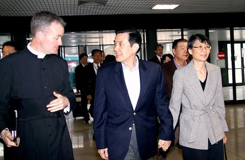President Ma Ying-jeou (馬英九) and first lady Chow Mei-ching (周美青) arrived in Rome yesterday to attend Pope Francis’ inaugural Mass at the Vatican today, as controversy rose over a present that Ma was expected to give the new pope.