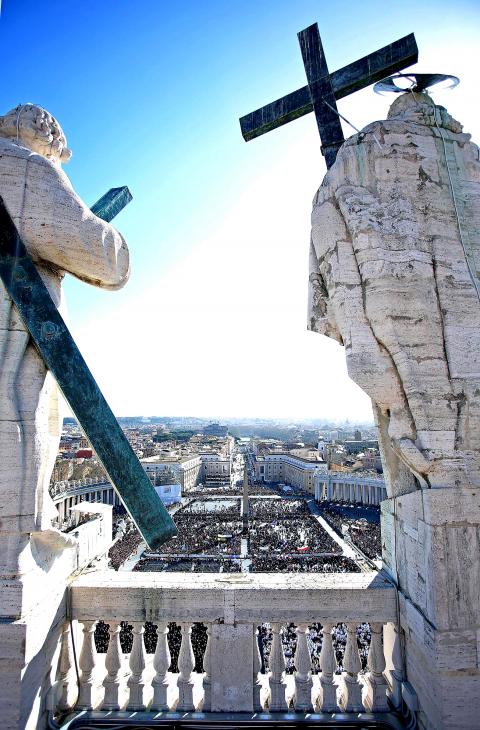 President Ma Ying-jeou (馬英九) yesterday stood among his counterparts from other countries in St Peter’s Square to attend Pope Francis’ inauguration Mass.