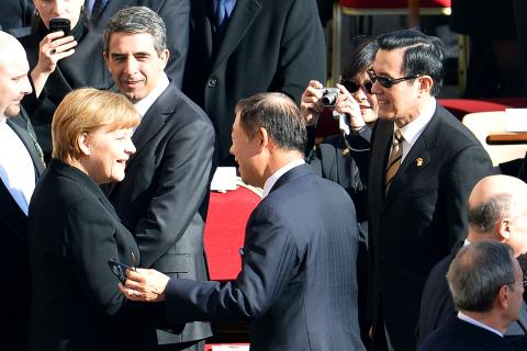 Ma and first lady Chow Mei-ching (周美青) sat in one of the rows reserved for heads of state. On Ma’s right was Costa Rican President Laura Chinchilla, while Chilean President Sebastian Pinera was on Chow’s left.