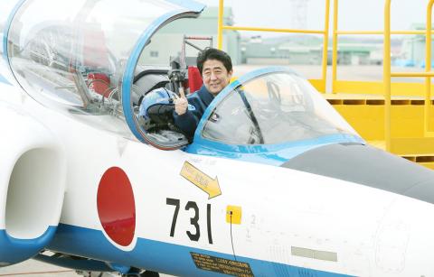 Major South Korean newspapers splashed a photograph of Japanese Prime Minister Shinzo Abe in a military trainer jet on their front pages yesterday, saying it was a reminder of Japan’s colonial-era atrocities.