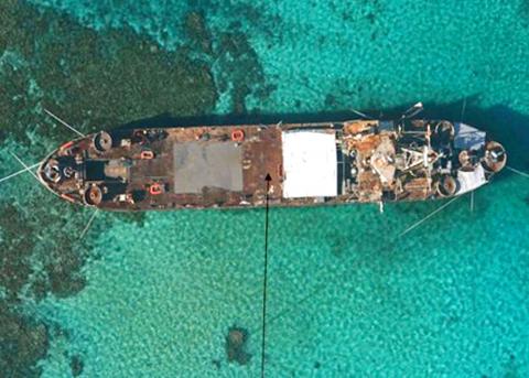 The shoal is guarded by a handful of Philippine Marines, believed to number fewer than 10, aboard a World War II-era ship that was deliberately grounded there in the late 1990s to serve as a base.