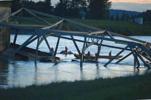 The four-lane Interstate 5 bridge — more than half a century old — collapsed about halfway between Seattle and Vancouver, British Columbia, Washington State Trooper Mark Francis said.