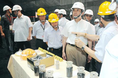President Ma Ying-jeou (馬英九) yesterday led a group of senior officials and reporters on an “energy tour” in an effort to raise awareness of the challenges facing Taiwan’s energy sector, but the visit was momentarily delayed after the most powerful earthquake so far this year struck in Nantou County.