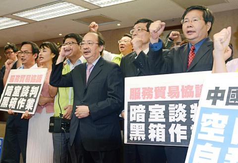 DPP spokesperson Lin Chun-hsien (林俊憲) said the party condemns the opaque nature of the service trade agreement.