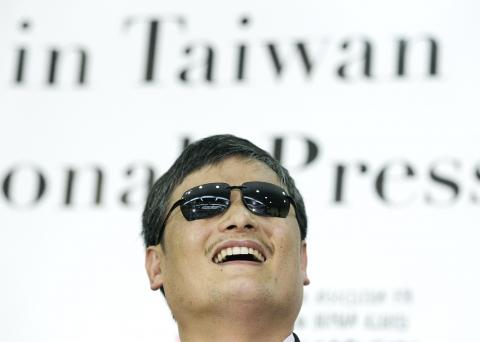 Chen, who has been living in the US after fleeing China in May last year, told an international press conference on the first full day of his 18-day visit to Taiwan, that President Ma Ying-jeou’s (馬英九) refusal to meet him “reflected the fierce competition between a democracy and an authoritarian regime.”