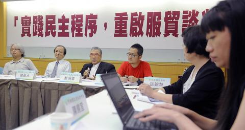 Jang Show-ling (鄭秀玲), professor and chair of National Taiwan University’s Department of Economics, said the service pact would affect more than 1,000 industries and millions of workers in Taiwan, but the government has not been honest with the public about the impact of the agreement.