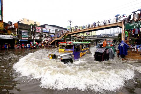 Streets turned into rivers with water rising above 2m in some parts of the megacity of 12 million people, while vast areas of neighboring farming regions on the main island of Luzon were also inundated.