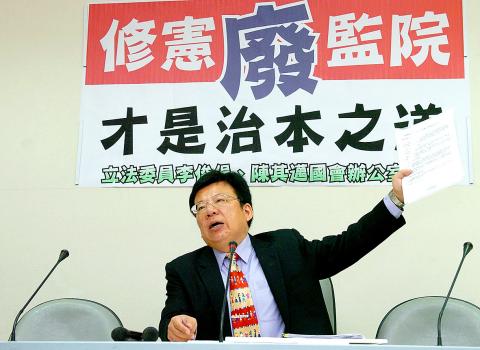 Democratic Progressive Party (DPP) Legislator Lee Chun-yi (李俊俋) yesterday said he would propose a constitutional amendment to abolish the Control Yuan, saying it was time to change the current system of government with its five branches.