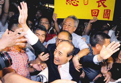 A number of KMT lawmakers, including Deputy Speaker Hung Hsiu-chu (洪秀柱), showed their support by welcoming Wang at the airport.