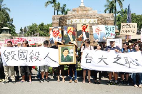 Students held a separate protest on the grounds of National Taiwan University yesterday.