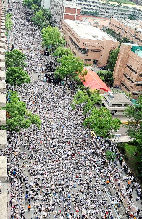 While different groups of demonstrators had different appeals — ranging from the fate of the country’s Fourth Nuclear Power Plant in Gongliao (貢寮), New Taipei City (新北市), to the government’s handling of an improper lobbying case allegedly involving major political figures — the call for Ma to step down was the common theme.