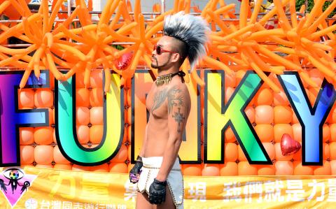Hong Kong singer Anthony Wong (黃耀明), who publicly came out last year, also took part in the parade, and spoke to the crowd after the parade returned to the square in front of Taipei City Hall a little after 4pm.