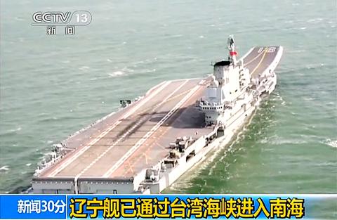 China’s Xinhua news agency reported early yesterday morning that the Liaoning, escorted by two guided missile destroyers, the Shenyang and Shijiazhuang, and two guided missile frigates, the Yantai and Weifang, had passed through the Strait on its way to a training mission in the South China Sea.