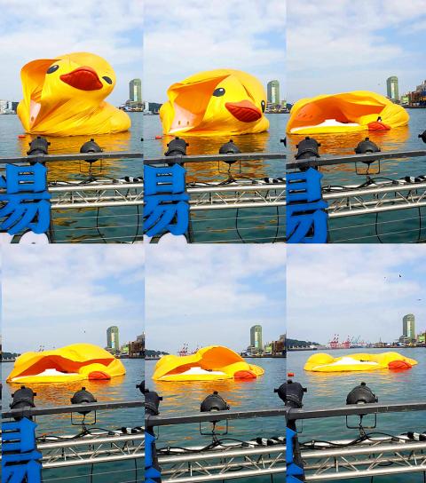 Visitors to Keelung City Harbor were flabbergasted yesterday afternoon, when the giant Rubber Duck installation suddenly burst and deflated, just 11 days after it went on display.