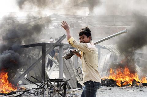 Chaos during nationwide strikes erupted for a second day as security forces were deployed to halt a demonstration by thousands of workers, who refused to move and threw bottles, stones and gasoline bombs at an industrial zone in Phnom Penh.