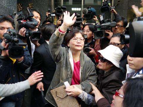 After speaking to reporters, Kuo walked into the prosecutors’ office escorted by supporters and her former colleagues, including former deputy minister of transportation and communications Hochen Tan (賀陳旦) and former Overseas Compatriot Commission minister Chang Fu-mei (張富美).