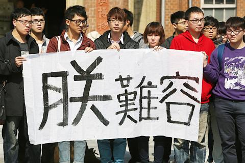 More than 200 students yesterday staged a really on campus, demanding an apology from National Cheng Kung University President Hwung Hwung-hweng (黃煌煇).