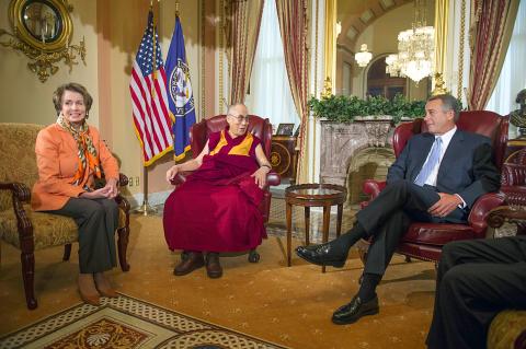 The Dalai Lama sat between US House of Representatives Speaker John Boehner, who said he wanted to show bipartisan support for the Buddhist monk, and the Republican leader’s often bitter rival Nancy Pelosi, a longtime activist on the Tibetan cause. He later met top senators.