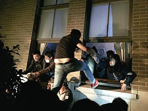 About one hour later, the students made it to the second floor of the Executive Yuan’s main building and, using a ladder, burst into Premier Jiang Yi-huah’s (江宜樺) office.