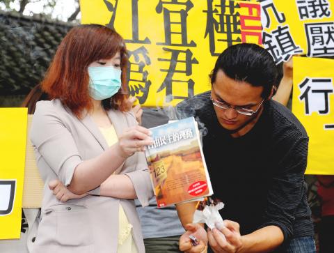 Later yesterday, Jiang issued a press release through the Executive Yuan saying he was disappointed the protesters burned the book.