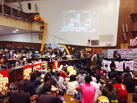 The students also criticized Ma for backing statements by Premier Jiang Yi-huah (江宜樺) and National Police Agency Director-General Wang Cho-chiun’s (王卓鈞) that forcefully evicting students from the Executive Yuan early on Monday morning — an action in which scores of students and police officers were injured — had been “completely legal.”