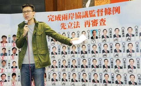 Four days after Ma expressed his support for the protesters’ demand that the supervision of cross-strait agreements be institutionalized at an international press conference on Mar. 29, Mainland Affairs Council Deputy Minister Chang Hsien-yao (張顯耀) briefed members of the Chinese Nationalist Party’s (KMT) Central Standing Committee on the details of the draft legislation to set up the monitoring mechanism.