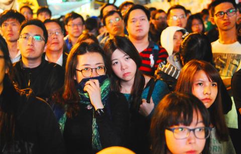 A Tamkang University student surnamed Lai (賴), one of the Sunflower movement supporters outside the Legislative Yuan last night, was very emotional upon hearing Chen Wei-ting’s announcement.